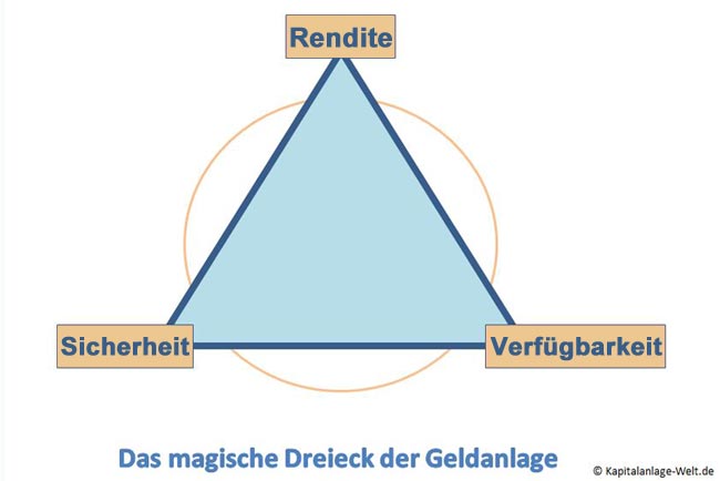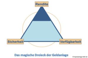 Ein magisches Dreieck der Geldanlage hilft Ihnen bei der Suche nach der richtigen Anlageform für Ihre Geldanlage. Das oben beschriebene Szenario bildet sich in der folgenden Abbildung durch die drei Werte Rendite, Sicherheit und Verfügbarkeit ab.